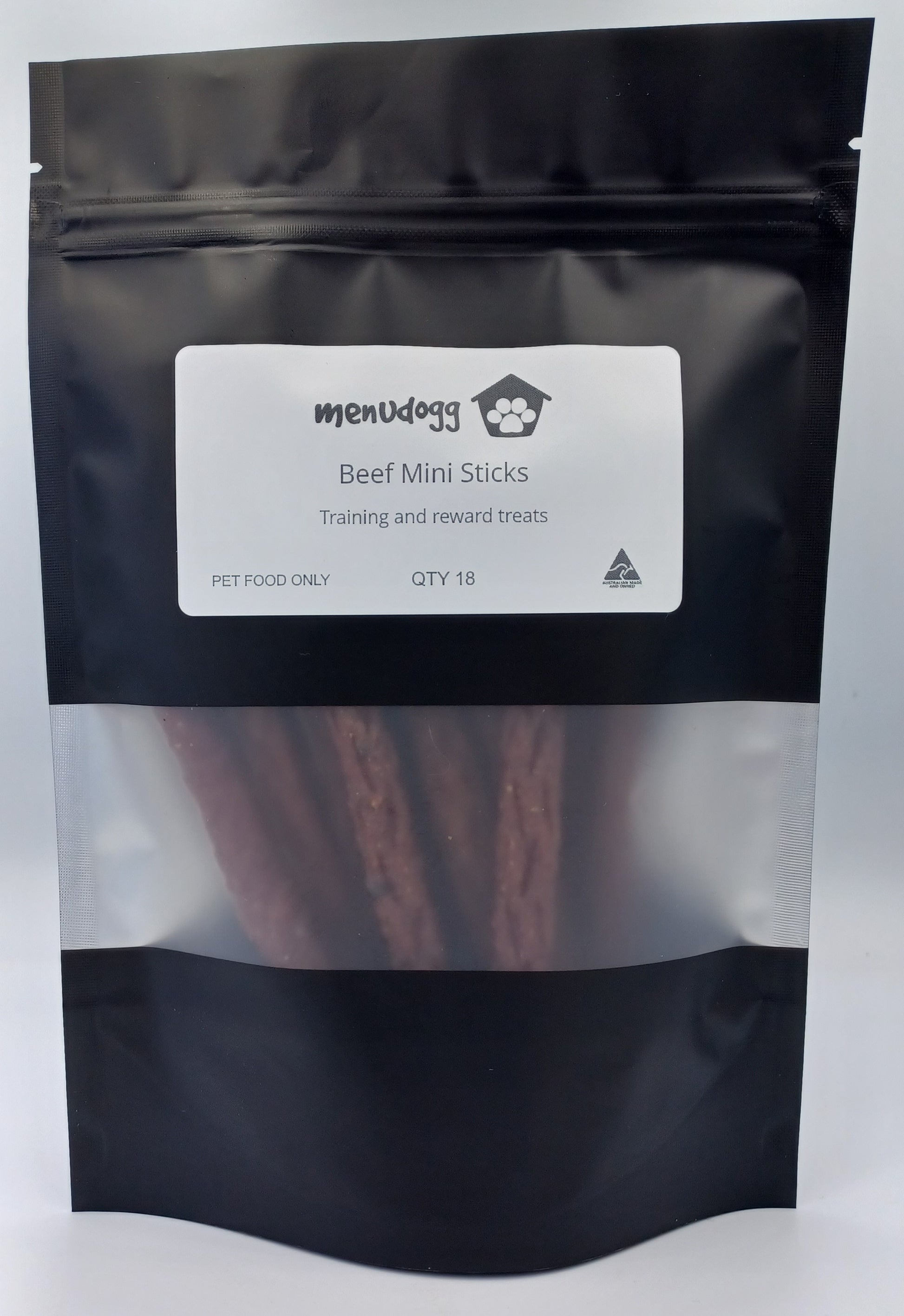 Beef Mini sticks come in a pack of 14 and are a pure meat treat for your doggo, very low in fat and a great source of protein.