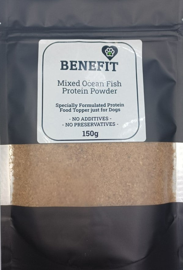 Whether you want your doggo to eat more, increase the nutritional value of their meal or simply enhance the taste of their usual food then Benefit Mixed fish protein topper is a smart choice.