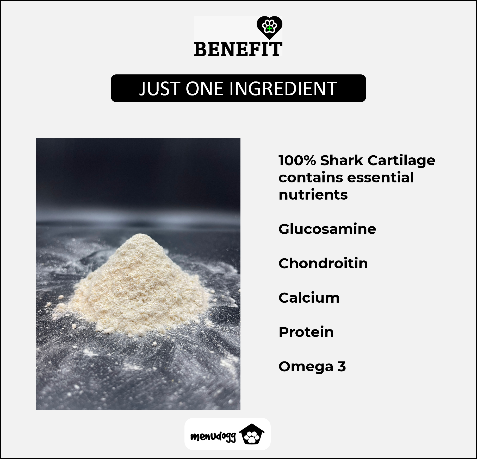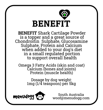 Shark Cartilage powder topper is packed with a major source of Chondroitin Sulphate, Glucosamine Sulphate, Protein & Calcium when added into your doggos diet in small, regulated portions as directed and beneficial for your dog’s overall health.