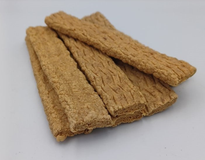A pack of 14 Semi-soft and chewy treats made from dried chicken are great to use as a training aid and easy to break apart.