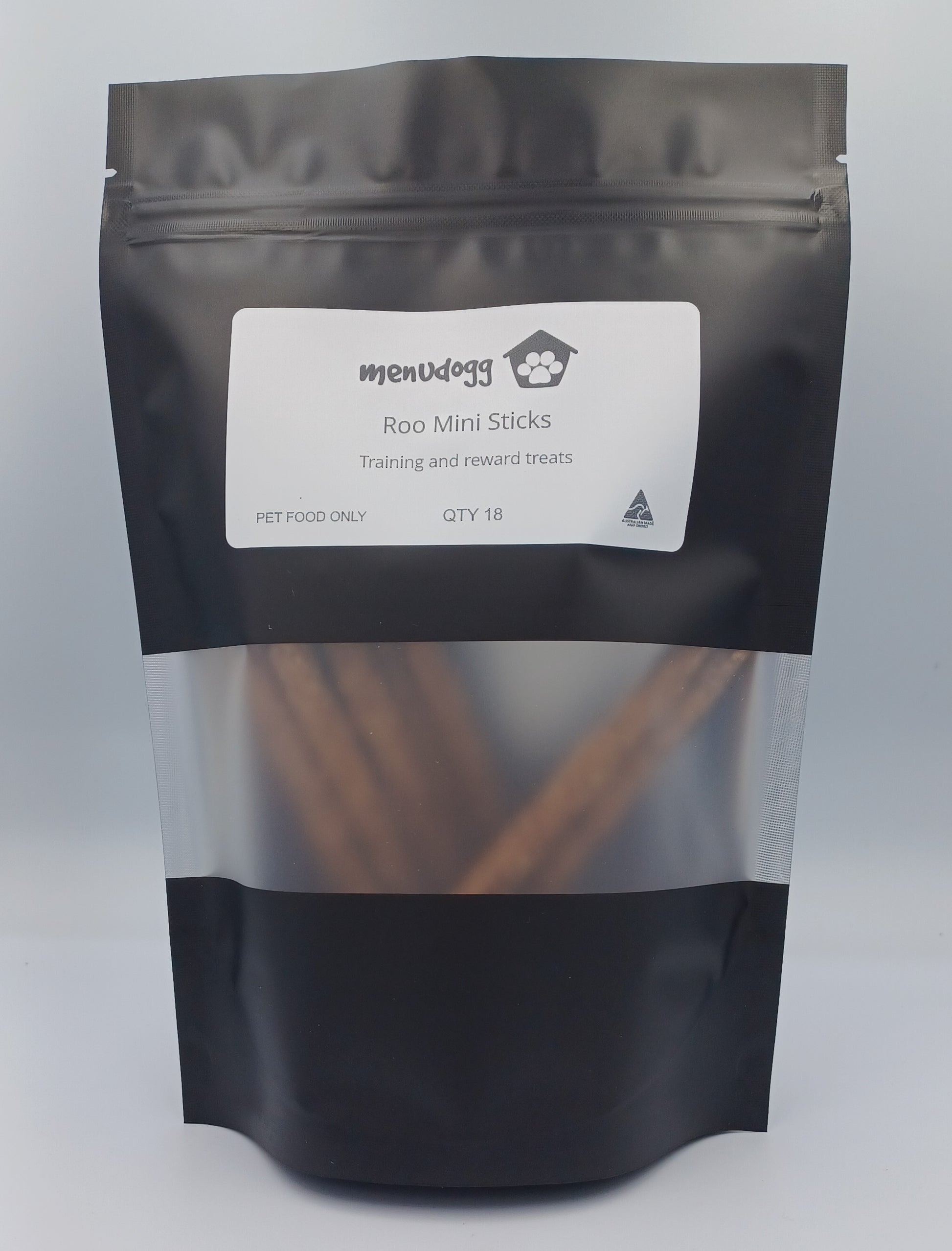 Menudogg Roo Mini Sticks pack of 18 soft and chewy treats for your doggo.