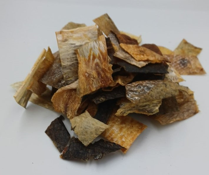 Australian Salmon skin cut into squares and dried.