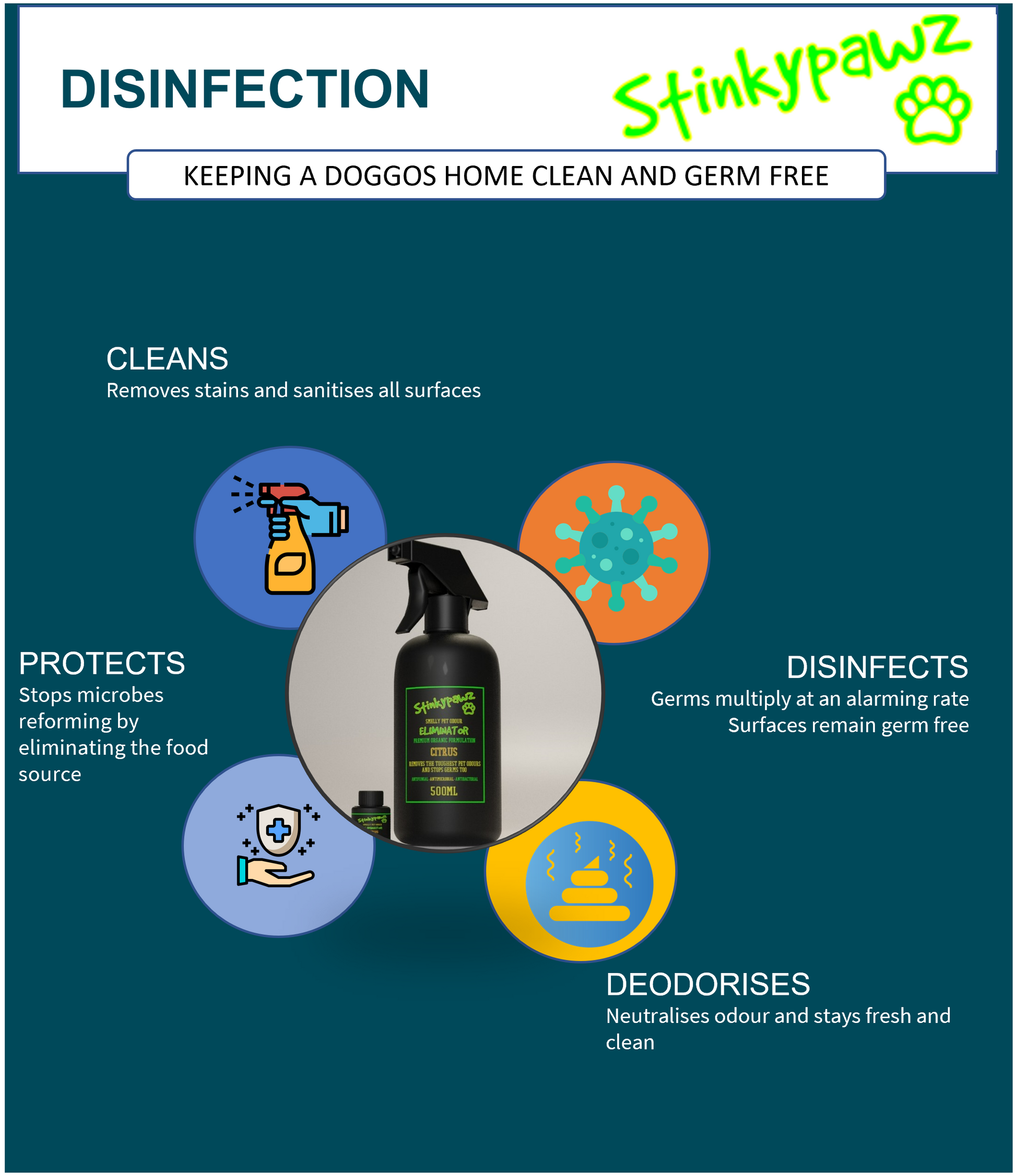 A green biological cleaner that permanently removes odour, germs even viruses caused by pee, poo, or other organic pet mess