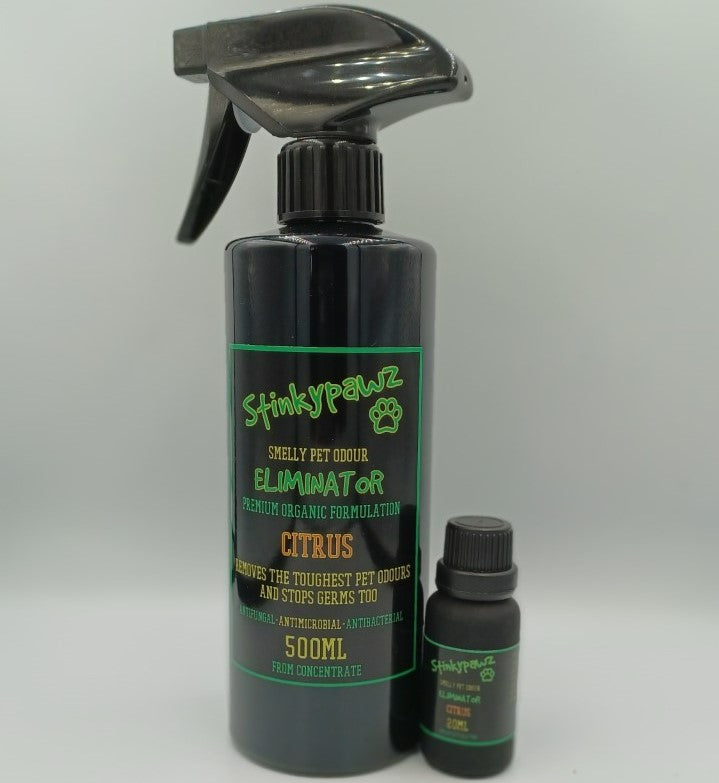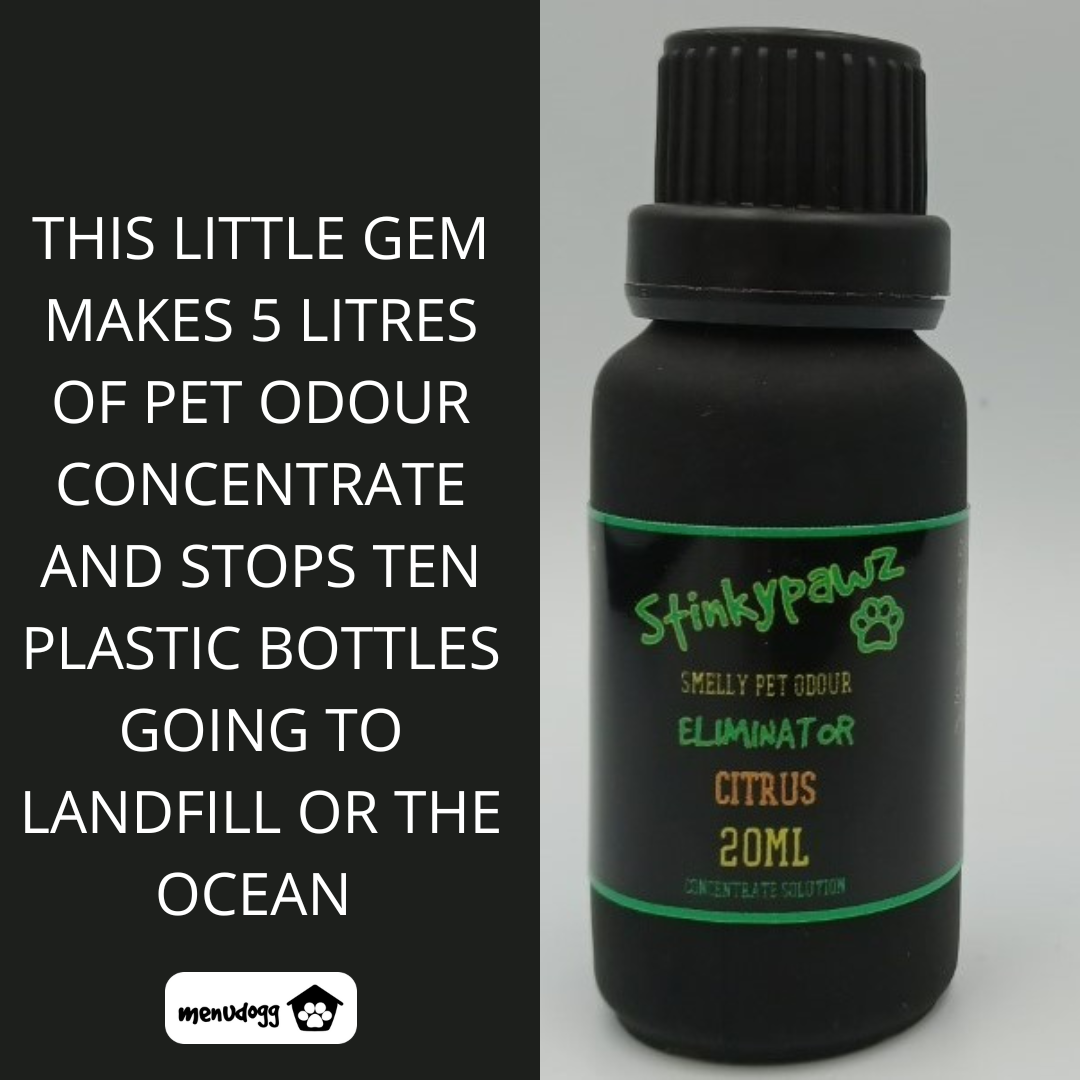 With StinkyPawz super concentrate. Reduce the number of plastic bottles using the 20ml Refill by Reusing the bottle provided.